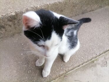 Napomena: u pitanju je crno-bela mačka sa kratkom dlakom; autentičan izgled prikazan na fotografijama.