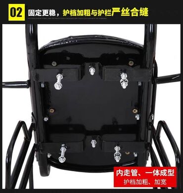- Konstrukcija od čeličnih cevi sa zaštitnom farbom; čvrsta baza sedišta sa vijcima za sigurno pričvršćivanje.