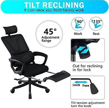 - Mehanizam za nagib i zaključavanje; stabilna petokraka baza.