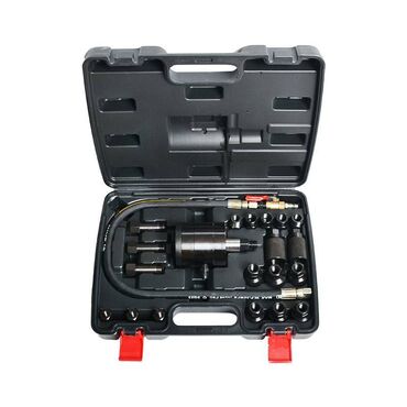 Profesionalni komplet za demontažu zapeklih/braviranih injektora sa hidrauličnim cilindrom i crevom sa brzim spojnicama. Pogodan za širok spektar dizel motora zahvaljujući bogatom skupu adaptera i navojnih nastavaka.