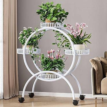 Višenamenski stalak za saksije sa točkićima – kružni dizajn, 5 polica