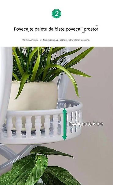 - Proširene i produbljene palete sa podignutim ivicama – dodatna stabilnost i sigurnije držanje saksija različitih veličina.
