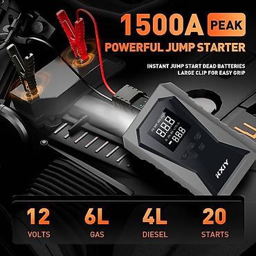 - Snažan jump starter: vršni strujni udar 1500A za 12V vozila; pogodan za benzinske motore do 6L i dizel do 4L; do 20 pokretanja po punjenju. Velike štipaljke za siguran i čvrst hvat.