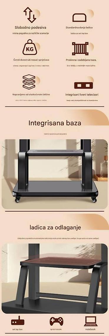 - Integrisana polica/ladica za dodatnu opremu: set‑top box, igraće konzole, laptop i audio‑video uređaje.