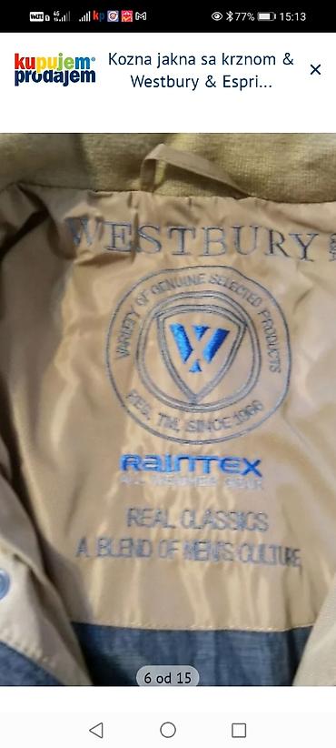 Napomena sa etikete: Westbury – Variety of Genuine Selected Products; Feel the since 1986; RAIN-TEX All Weather Gear.