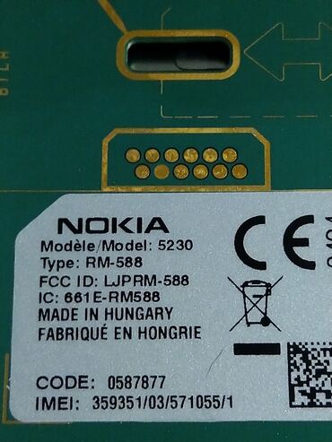 - Model: Nokia 5230, Type RM-588, proizvedeno u Mađarskoj (etiketa na uređaju)