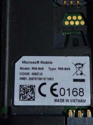 CrnTelefon Nokia modela RM-945, crne boje, sa fizičkom tastaturom. Uređaj ima uklonjivu zadnju masku koja omogućava pristup bateriji i SIM kartici. Ekran je oštećen. Proizveden je u Vijetnamu. Pogodan je za osnovne telefonske funkcije.