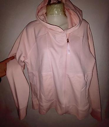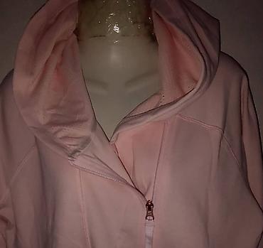 Ženska dukserica/duks jakna s kapuljačom – do 160 kg - Model: duga dukserica na rajsferšlus, sa kapuljačom i crnim učkurima - Kroj: komotna, produžena silueta koja prekriva kukove; pogodna za puni...