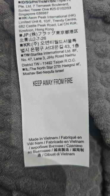 - Održavanje (sa etikete): prati na 30°C, prati i peglati naopako, bez omekšivača, ne izbeljivati, ne sušiti u mašini; držati dalje od vatre