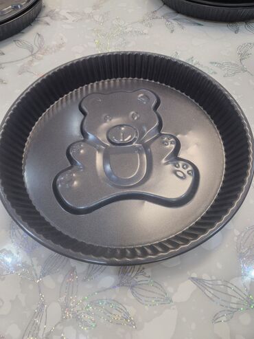 Kalupi za torte i kolače – okrugli plehovi sa reljefnim motivima: - Srce (dva preklopljena srca) - Meda - Deda Mraz Materijal: metal, nelepljiva unutrašnja površina. Reljef na dnu daje jasan oti...