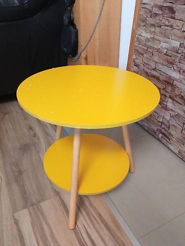 - Boja: jarko žuta (gornja ploča i donja polica)