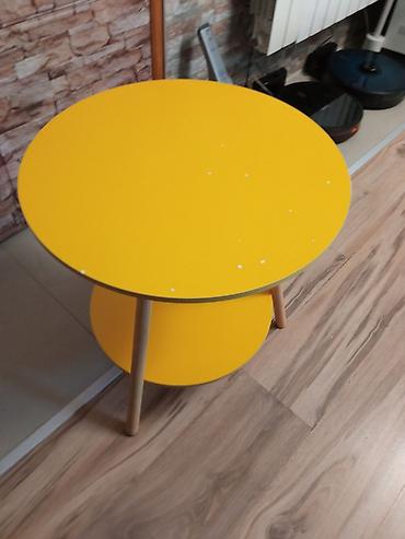 - Dimenzije (procena): prečnik gornje ploče oko 45–50 cm; ukupna visina oko 45–50 cm