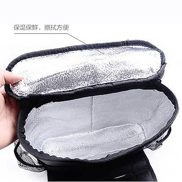 - Gornji odeljak je termo/izolovana torba sa poklopcem na rajsferšlus – čuva hladnoću ili toplotu napitaka i grickalica; lako se briše iznutra.