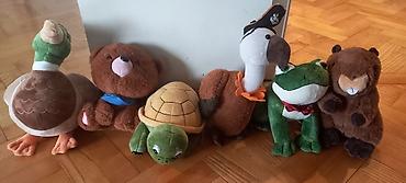 - Modeli: patka (zeleno‑braon sa belim okovratnikom), meda sa plavom maramom, kornjača sa žutom oklopnom školjkom, ptica/dodo sa narandžastom kragnom i crnom kapom, žaba sa crvenom leptir‑mašnom, dabar sa vidljivim zubićima.