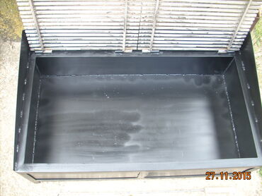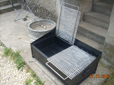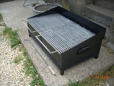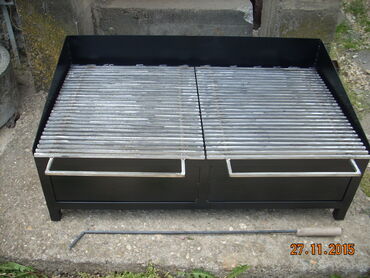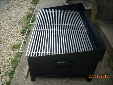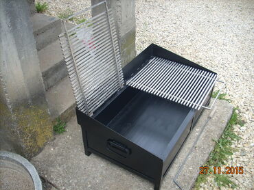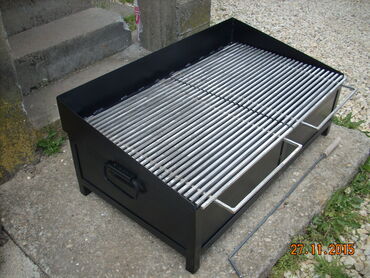 Okvir rostilja je napravljen od L - Profila 30x30 . Kutija je od debljeg lima 2 mm otpornog na toplotu. Resetka je napravljena od Prohromskog firiketa 8x8mm debljine i na sarkama je postavljena. Okvir rostilja je ofarban vatrostalnom bojom! Uz rostilj dobijate Dzarac za zar.