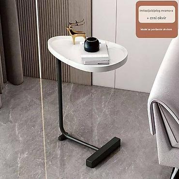 Pomoćni stočić „C” oblika – imitacija belog mermera sa crnim okvirom