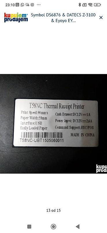 - Tehnologija: termalna, ESC/POS komande
