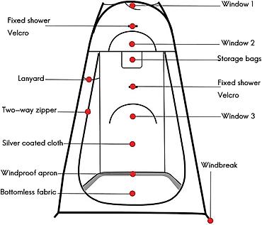 - Višenamenska kabina za tuširanje, presvlačenje ili toalet na kampovanju, plaži, dvorištu, bazenu ili u kući.