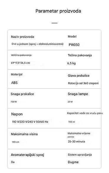 - Snaga prskalice: 750 W