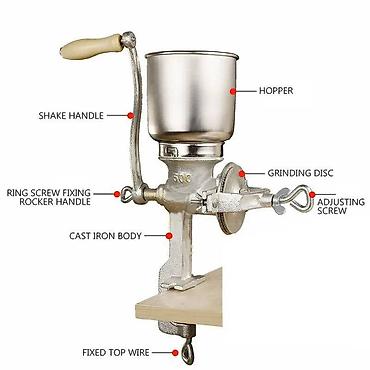 Ručna mlinica za žitarice sa stegom za sto - Materijal: telo od
