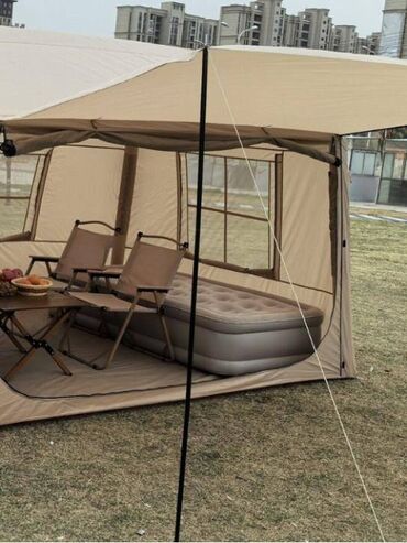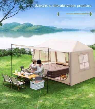 Idealno za kampovanje, vikend odmore i dvorišne chill zone – pruža veliki, svetao i dobro provetren prostor sa brzom inflacijom i suncobran-nadstrešnicom.