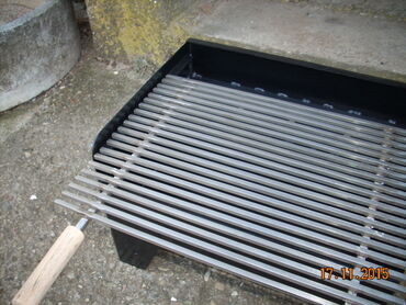 Okvir rostilja je napravljen od debljeg 2mm dekapiranog lima otpornog na toplotu. Resetka je napravljena od Prohromskog firiketa 6x6mm debljine i moze se pomerati i podizati u dva nivoa u zavisnosti od jake vatre.okvir rostilja je ofarban vatrostalnom bojom!