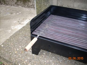 Okvir rostilja je napravljen od debljeg dekapiranog lima otpornog na toplotu. Resetka je napravljena od firiketa i moze se pomerati i podizati u tri nivoa u zavisnosti od jake vatre.okvir rostilja je ofarban vatrostalnom bojom!