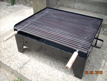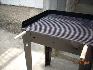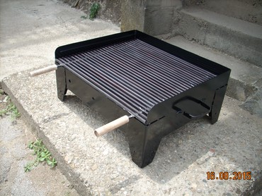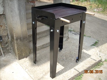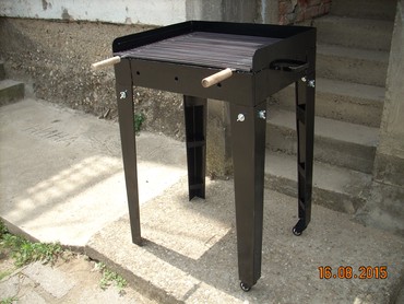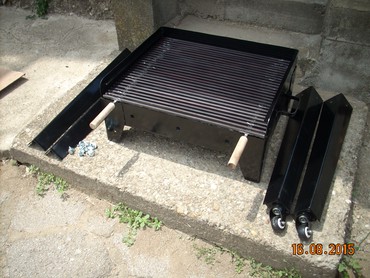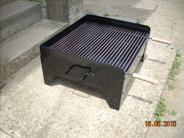 Okvir rostilja je napravljen od debljeg 2 mm dekapiranog lima otpornog na toplotu. Resetka je napravljena od firiketa i moze se pomerati i podizati u dva nivoa u zavisnosti od jake vatre.okvir rostilja je ofarban vatrostalnom bojom!Ugradne nogice su visine 80 cm, Tako da rostilj bude u visini od 90 cm sa nogicama!Tockii su na dve nogice postavljeni radi lakseg pomeranja.