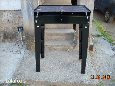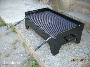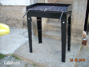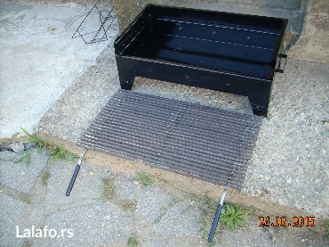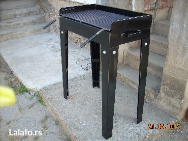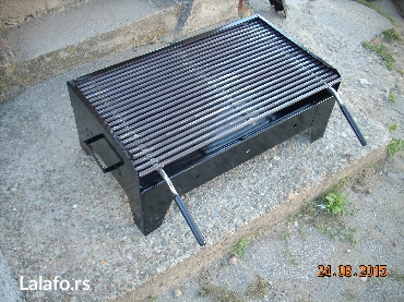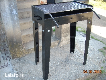 Okvir rostilja je napravljen od debljeg dekapiranog lima otpornog na toplotu. Resetka je napravljena od firiketa i moze se pomerati i podizati u dva nivoa u zavisnosti od jake vatre.okvir rostilja je ofarban vatrostalnom bojom!Ugradne nogice su visine 80 cm, Tako da rostilj bude u visini od 90 cm sa nogicama!