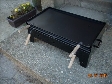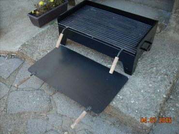 Okvir rostilja je napravljen od debljeg dekapiranog lima otpornog na toplotu. Resetka je napravljena od firiketa i moze se pomerati i podizati u dva nivoa u zavisnosti od jake vatre.okvir rostilja je ofarban vatrostalnom bojom!Gril ploca je debljine 2 mm.