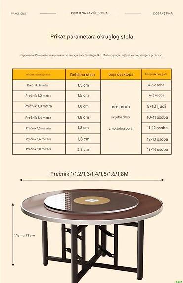 Sklopivi okrugli sto sa rotirajućom tacnom (Lazy Susan) - Prečnici