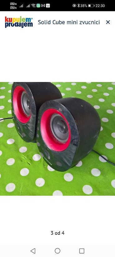 Sadrži dva zvučnika u paru sa fiksnim kablovima za USB napajanje i 3.5 mm audio ulaz. Idealno rešenje za svakodnevno slušanje pored računara ili laptopa. Na kućištu je vidljiv naziv Solid Cube.