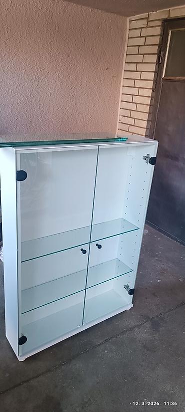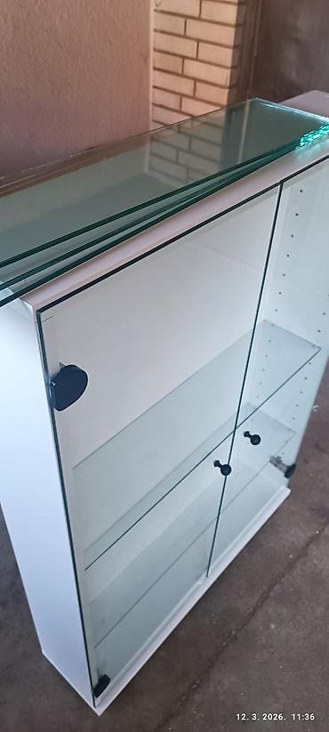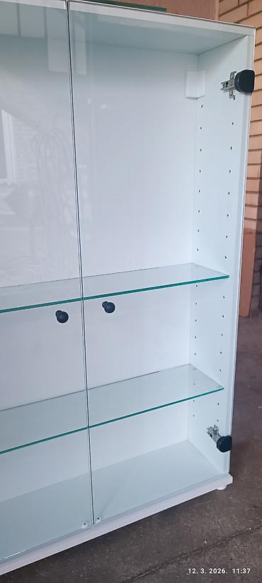 - Konstrukcija: korpus u beloj boji, prednja strana i police od kaljenog stakla.