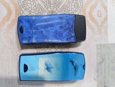 - Oba telefona u plavim maskama: jedan sa motivom delfina (prednja i zadnja strana), drugi sa plavom „mermer“ maskom i dekorativnim umetkom iznad tastature.