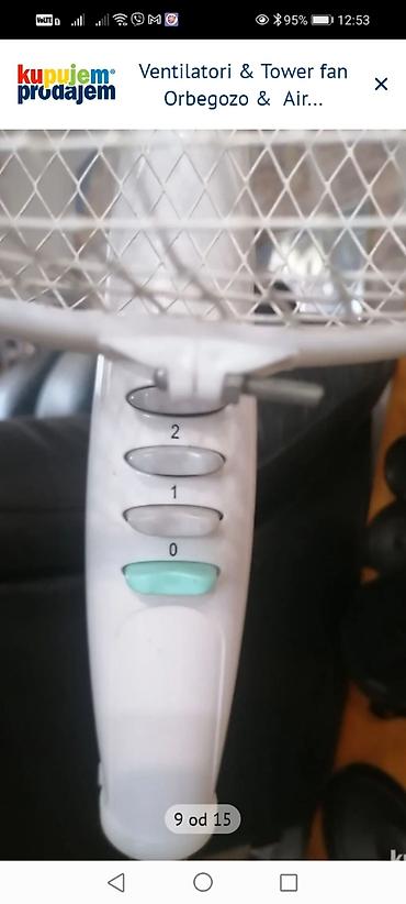 - Dva bela stojeća ventilatora sa postoljem u obliku krsta