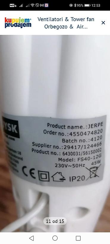 - Na jednom komadu vidljiva oznaka brenda/serije: JYSK – Product name: JERPE; Model: FS40-12G