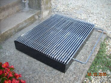Okvir rostilja je napravljen od debljeg lim 2mm otpornog na toplotu. Resetka je napravljena od firiketa i na sarkama je postavljena. Ugradna kutija rostilja je ofarban vatrostalnom bojom! Na okvir kutije je izvarena Vinkla 20x20x3 mm