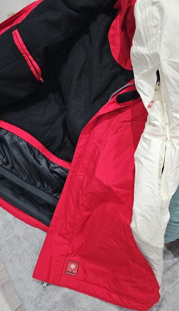 Bela zimska/ski jakna sa kapuljačom. - Materijal: vodoodbojna spoljašnjost sa toplom postavom - Zatvaranje: centralni rajsferšlus sa zaštitnom preklopnom patnom i drukerom dole - Džepovi: tri spol...