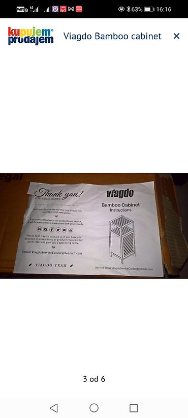 - Paket sadrži uputstvo za sastavljanje (Viagdo Bamboo Cabinet Instructions).