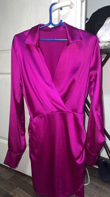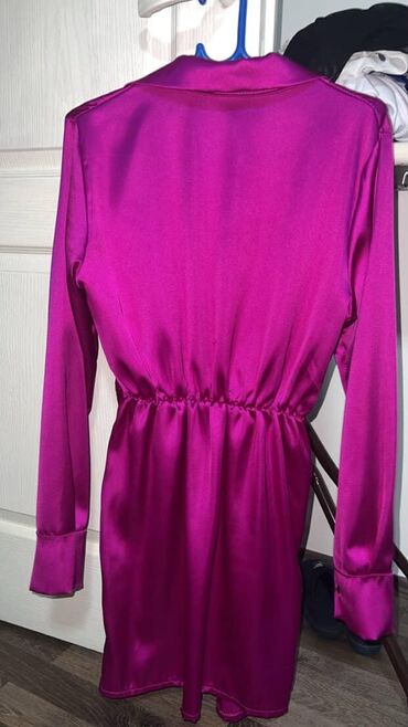 Svilenkasta haljina košulja-kroja u intenzivnoj fuksija/ružičasto-ljubičastoj boji.