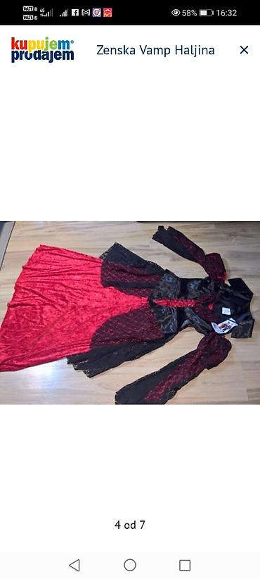 - Duga haljina u crveno‑crnoj kombinaciji, idealna za Halloween, tematske žurke i maskenbale