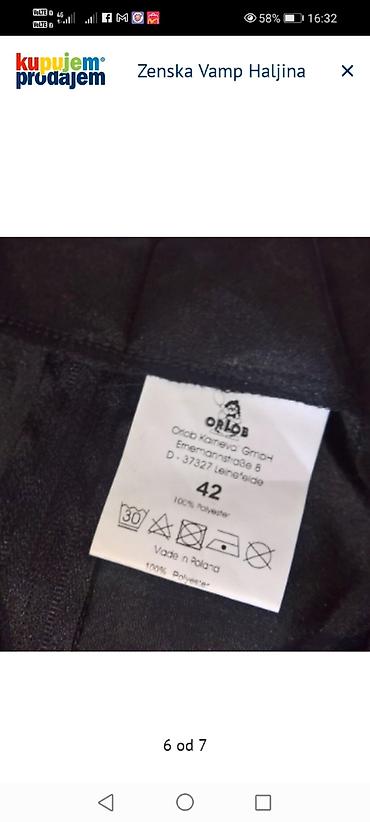 - Na haljini je priložena fabrička etiketa sa ilustracijom kostima