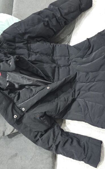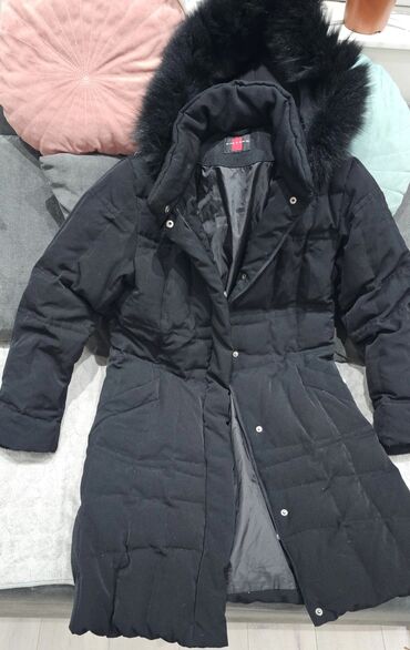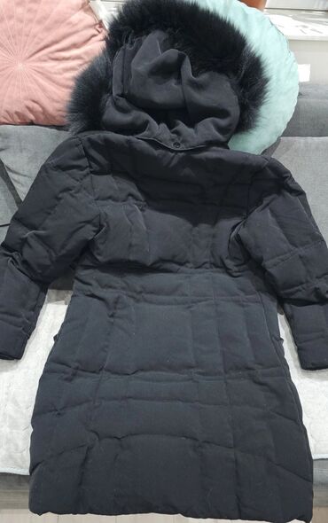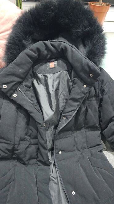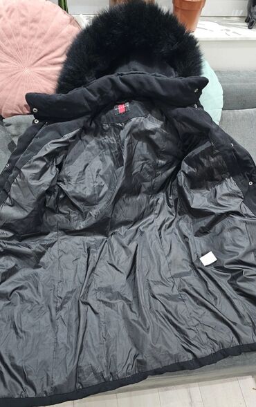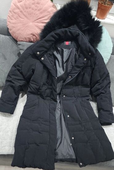 Ženska zimska jakna/parkа, crna, dužine do kolena.Perjana i krzno lisice ( etiketa), brend Gallery