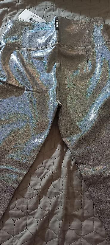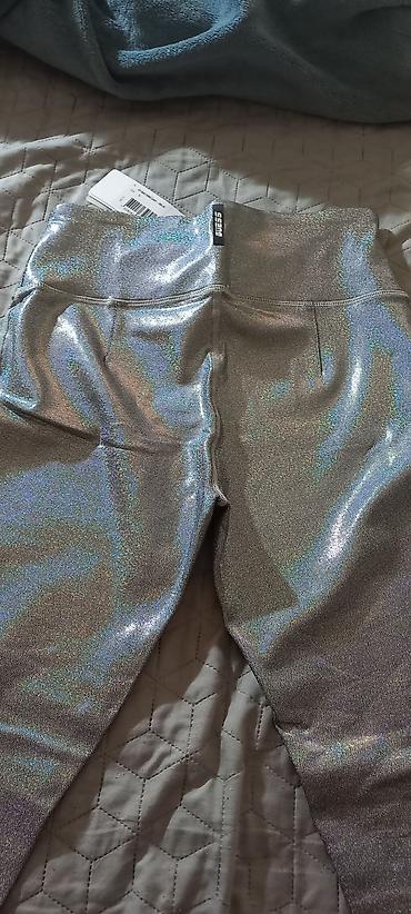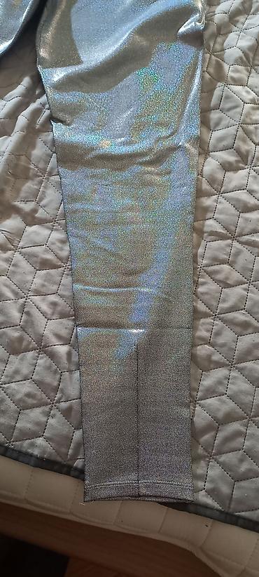Idealne za večernje izlaske, scenske nastupe ili trendi sportsko-kežual kombinacije. Materijal je rastegljiv i svetlucav, sa sitnim tačkastim uzorkom koji daje prizmatičan sjaj na svetlu. Model pruža glatke šavove i dobar oblik struka i kukova.