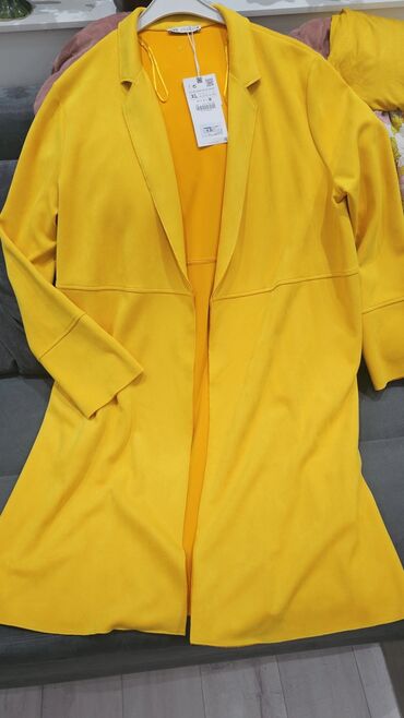 Zara ženski mantil( velur) u jarko žutoj boji.