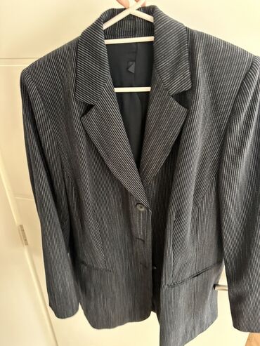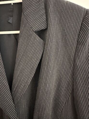 - Boja: tamnosiva/antracit sa tankim belim prugama (pinstripe uzorak)