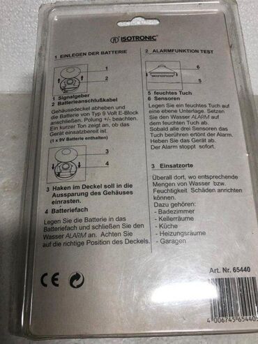 0083 Detektor vode ISOTRONIC: Brzi i pouzdan alarm pre nego što dođe do skupe štete nastale od vode; Može se koristiti bilo gde bez složene instalacije; Napajanje: 9 V alkalna baterija (uključena u isporuku); Rok trajanja: Standby cca 1 godina; Upozorenje: približno 85 dB signalni ton; CE oznaka; Uplatu možete izvršiti pouzećem, plaćanjem kuriru prilikom isporuke ili uplatom pre slanja na tekući račun. Uplatom pre slanja štedite jer izbegavate poštarinu za povrat novca preko kurirske službe. Manji predmeti se mogu poslati u vrednosnom pismu kao preporučena pošiljka i to samo posle prethodne uplate. U slučaju da ste iz bilo kog razloga nezadovoljni proizvodom možete vratiti proizvod u roku od 15 dana i novac ćete dobiti nazad. Sve troškove slanja proizvoda snosi kupac ako se prethodno ne dogovori drugačije.
