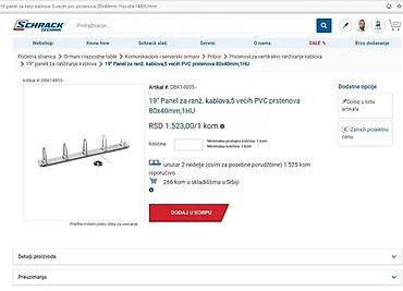 - Montaža: na prednju rack šinu (standardni 19" razmak rupa); predviđen za organizaciju i rasterećenje mrežnih, patch i napojnih kablova