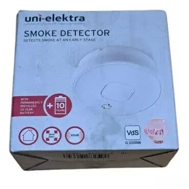 *** AKCIJA *** #0163 **Detektor dima sa 10 godina trajanja baterije;** **UNI-ELEKTRA Germany;** **NOVO, neraspakovano!** • Sa trajno instaliranom 10-godišnjom baterijom • Ekstra glasan ton alarma (...