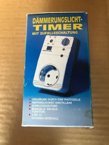 Pokupiti na licu mestaAKCIJA 0071 TAJMER - Digitalna utičnica sa funkcijom sumraka za paljenje i automasko gašenje svetla; - Rad pomoću Fotoćelije, ; - Funkcija sa Random Slučajnim uključivanjem i gašenjem - Ručni režim - Automaski režim; Nemački kvalitet; Veoma jednostavno rukovanje; Automasko gašenje svetla odvraća provalnike! 10A; 230V; NOVO, neraspakovano! Made in Germany;
